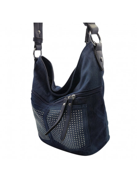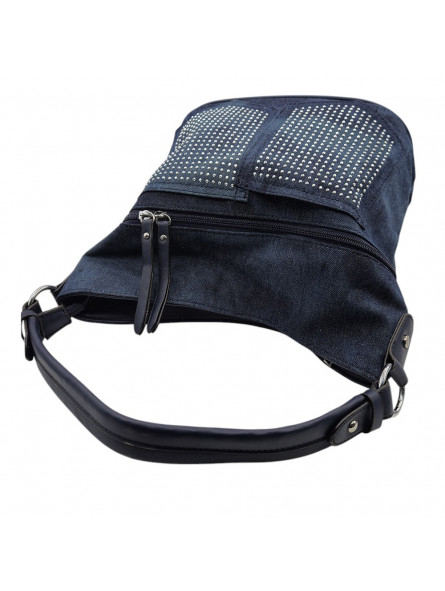 Tasche aus gewaschenem Denim mit silbernen Strassapplikationen - BC014 DENIM