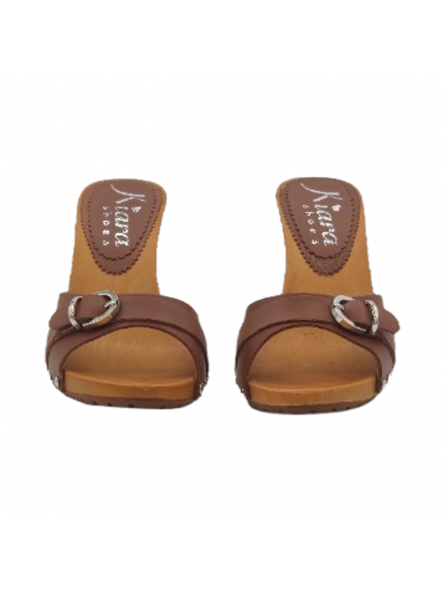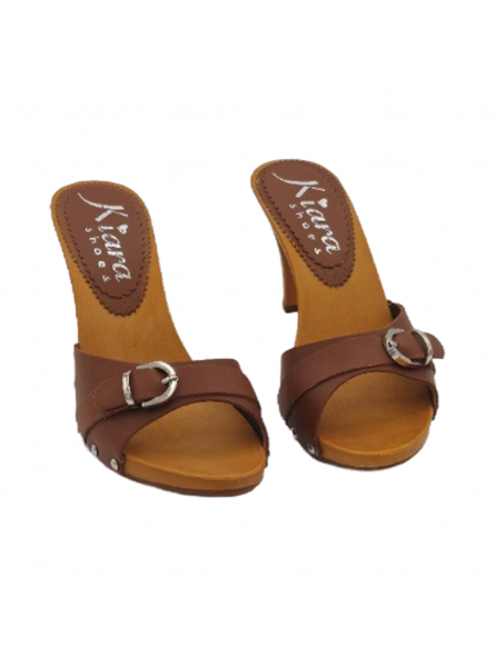 BEQUEME BRAUNE CLOGS MIT SILBERNER SCHNALLE