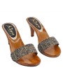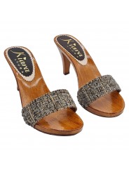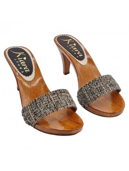 CLOGS MIT BRAUNEM TWEEDBAND MIT ABSATZ 9