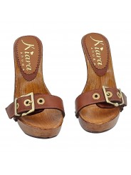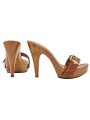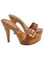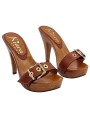 LEDERCLOGS MIT HIGH HEELS UND GOLDENER SCHNALLE