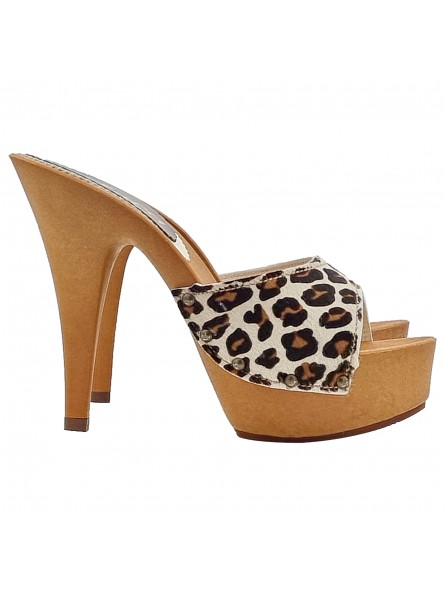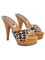 MULES AUS LEDER MIT LEOPARDDRUCK UND HOHEN ABSÄTZEN