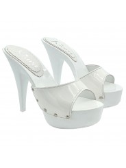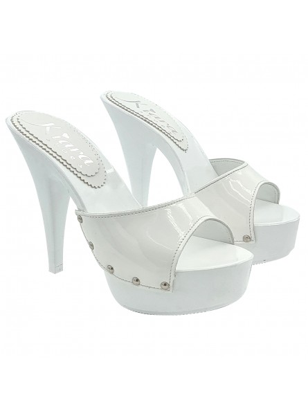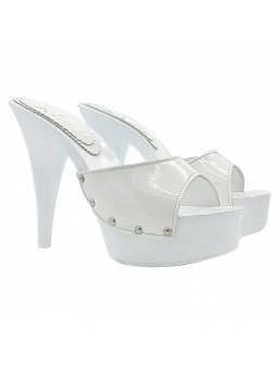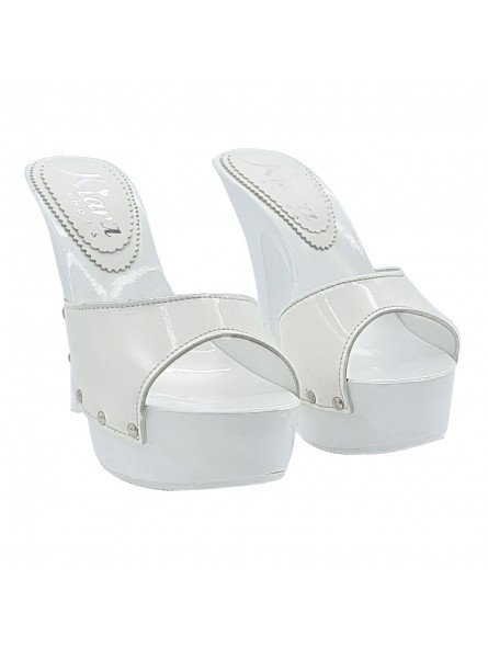 WEISSE LACK-MULES MIT HOHEM ABSATZ