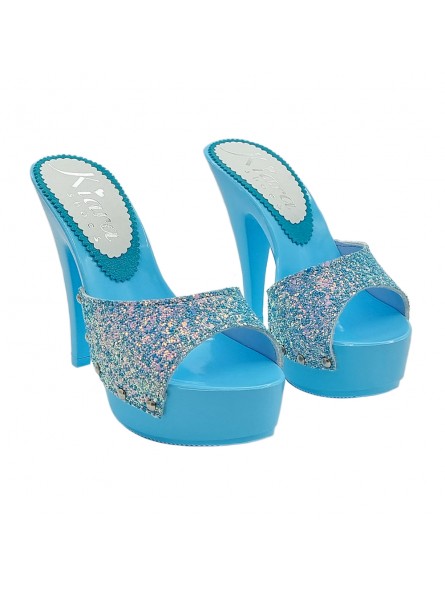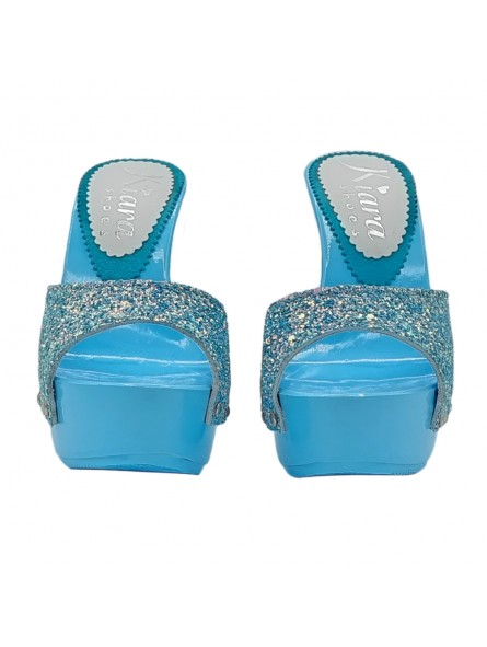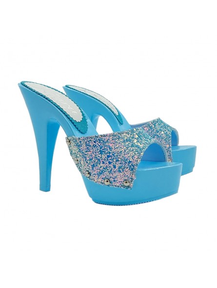 DAMEN-CLOGS BLAU GLITZER SKY ABSATZ 13