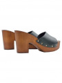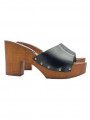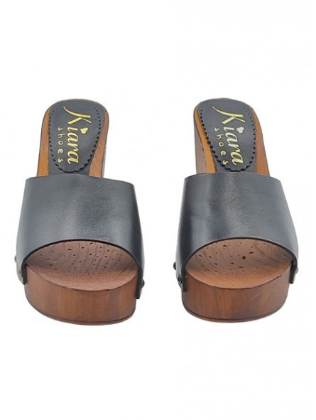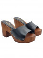 Schwarze Lederclogs mit brauner Basis und 9 cm Absatz