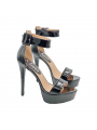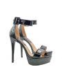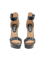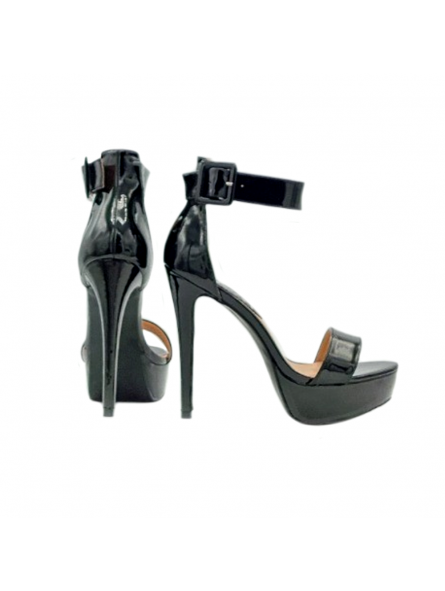 Damensandalen aus schwarzem Lackleder, verstellbarer Knöchelriemen, 13 cm Absatz + 3,5 cm Plateau.