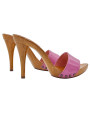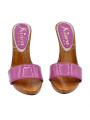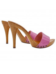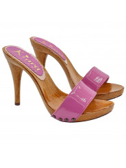 Fuchsiafarbene Lackclogs und 12 cm Absatz
