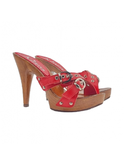 CLOGS MIT GEKREUZTEN BÄNDERN UND SILBERNEN SCHNALLEN