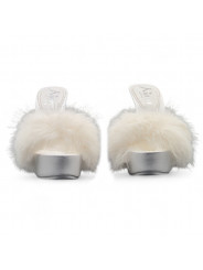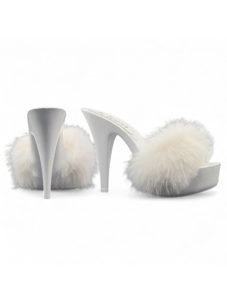 Damenclogs mit 13 cm Absatz und weißem Fell - Handgemacht
