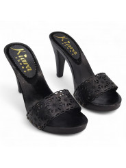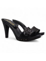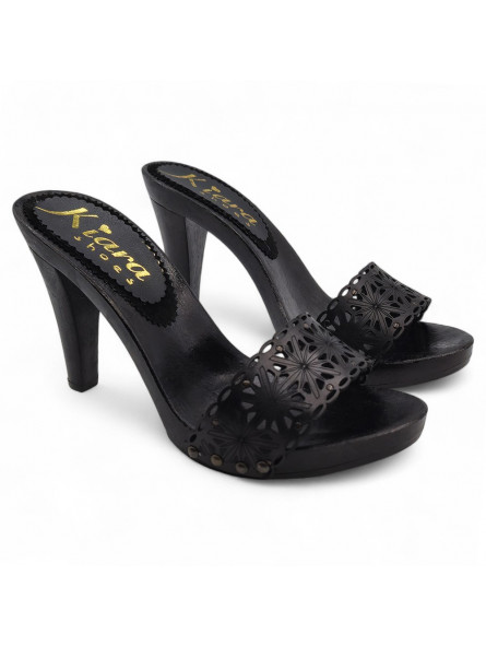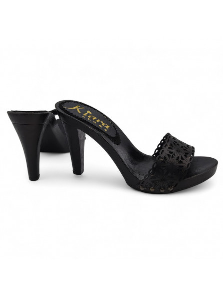 Damen-Clogs Schwarz | Lederriemen mit Laserschnitt – 11 cm Absatz – Made in Italy