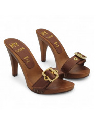 Damenclogs mit Lederriemen & Schnalle | 11 cm Absatz