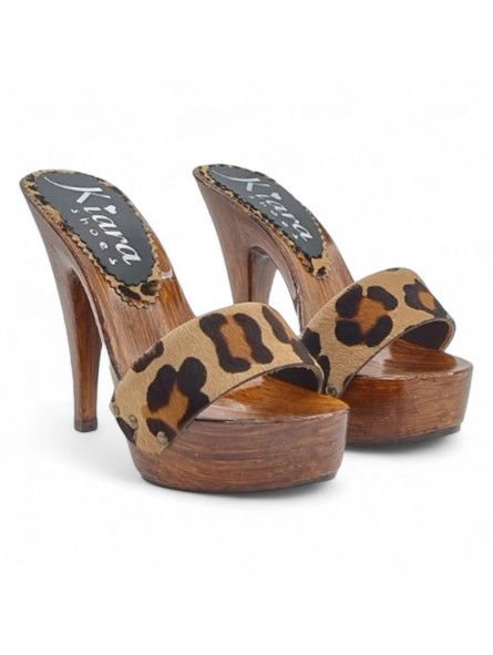 Hohe Clogs 13 cm mit Leopardenlederriemen – HandMade in Italy