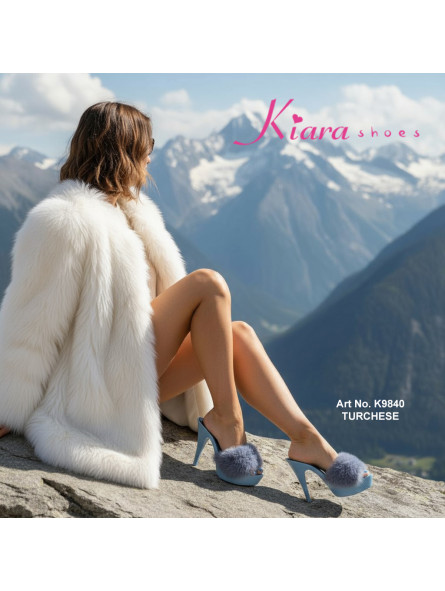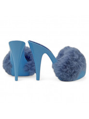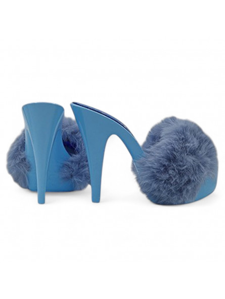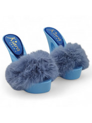 Damenclogs Blau mit Türkisfell – 13 cm Absatz