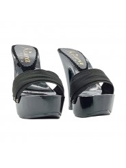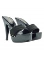Perfekt für alle, die Stil und Komfort suchen: Diese Clogs vereinen italienisches Handwerk mit einem auffälligen Design. Die schwarze, lackierte Holzoptik-Basis verleiht einen raffinierten und modernen Touch, während die doppelten schwarzen Riemen mit dekorativen Nieten dem Look Charakter verleihen.