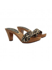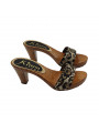 Holzeffekt Clogs mit doppeltem schwarzen Farbband, Ferse 8 cm. Handwerkliche Verarbeitung. Stabil und bequem, werden sie vollständig in Italien hergestellt.