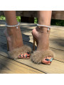 SANDALEN AUS CHAMPAGNER MIT PELZ UND ABSATZ 12