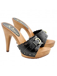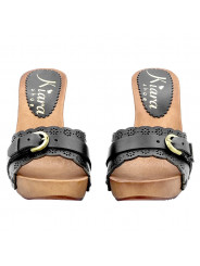 SCHWARZE CLOGS LASERBAND UND SCHNALLE