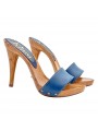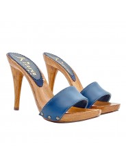 CLOGS AUS BLAUEM LEDER MIT STOCKABSATZ