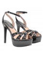 Schwarze Lackledersandale mit Glanzeffekt