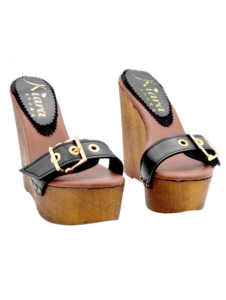 KEIL MIT SCHWARZEM LEDERBAND UND HOHEM ABSATZ