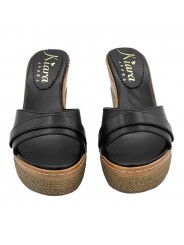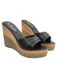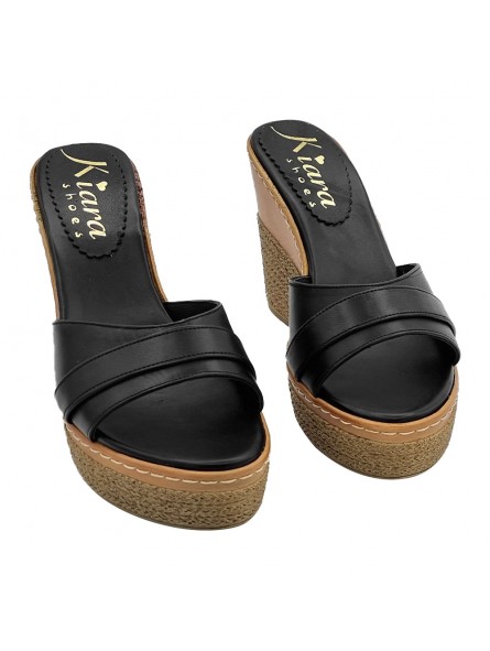 KEILSANDALEN AUS SCHWARZEM LEDER MIT ABSATZ 11