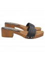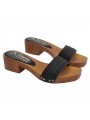NIEDRIGE SCHWARZE CLOGS MIT DOPPELTEM STOFFBAND