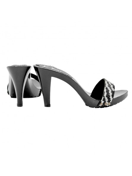 SCHWARZE CLOGS MIT STRASSBAND ABSATZ 9