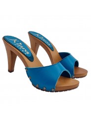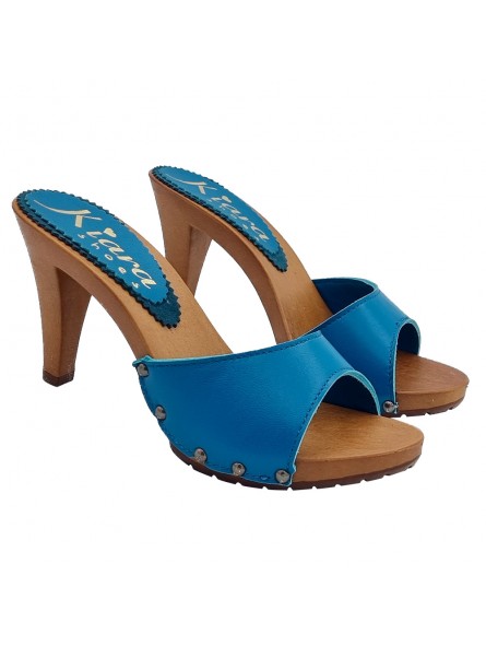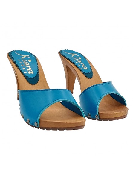 KÖNIGSBLAUE LEDERCLOGS MIT ABSATZ 9