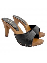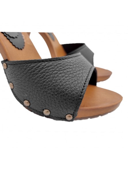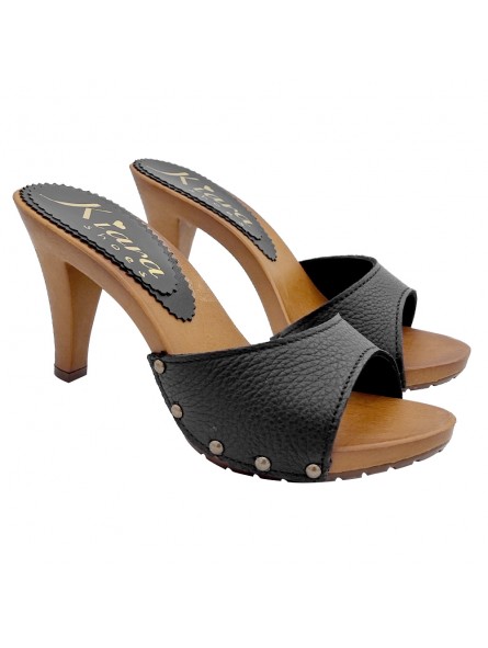 SCHWARZE LEDERCLOGS MIT ABSATZ 9