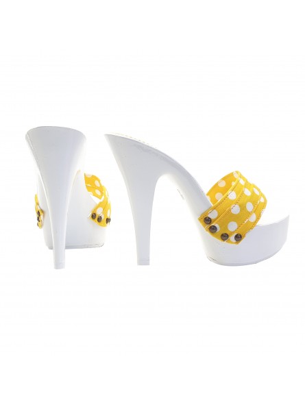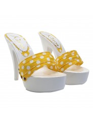 WEISSE MULES MIT GELBEM POLKA DOT BAND