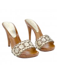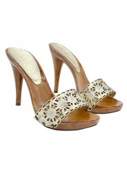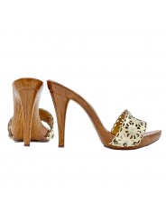 GOLDGELASERTE LEDERCLOGS MIT HOHEM ABSATZ