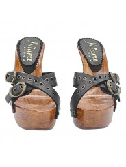 HOHE SCHWARZE CLOGS MIT EINSTELLBAREN SCHNALLEN