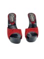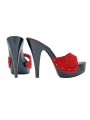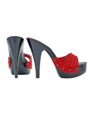 SCHWARZE MULES MIT ROTEM WILDLEDERBAND