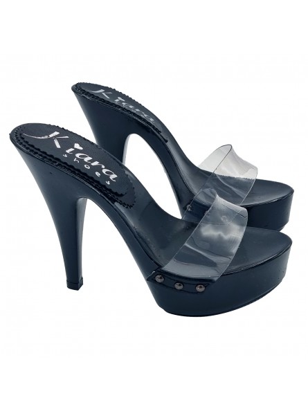 SCHWARZE CLOGS MIT TRANSPARENTEM BAND UND ABSATZ 13