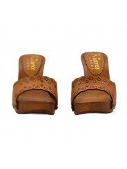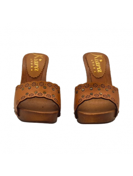 Clogs with brown wood effect base