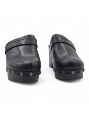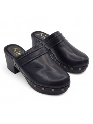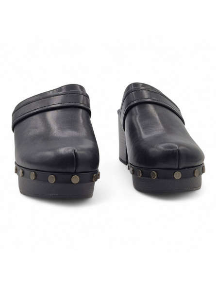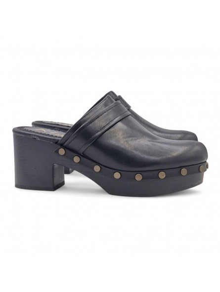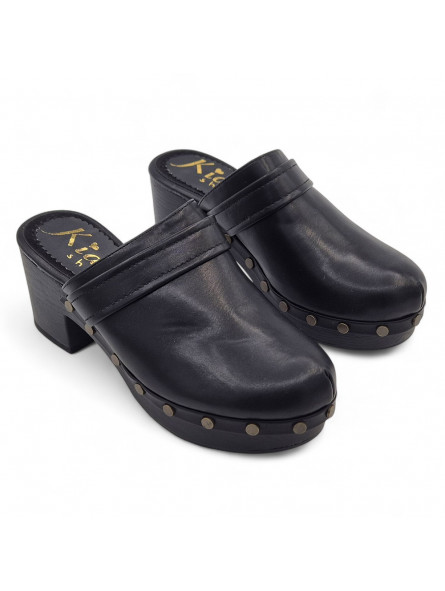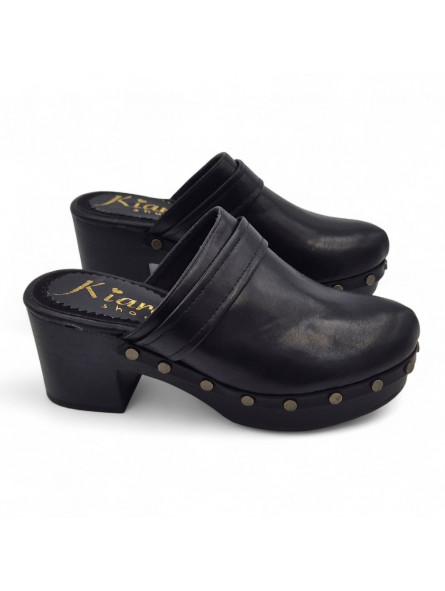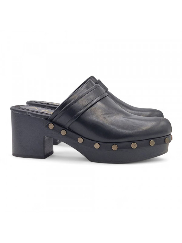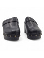 Swedish-style clogs in black eco-leather & 7 cm heel