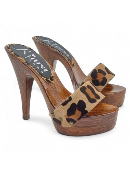 High clogs 13 cm with leopard print leather strap – HandMade in Italy