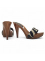 The zebra-patterned leather upper adds character and originality, while the ultra-light wooden-effect structure ensures stability and comfort—enhanced by the front platform that reduces the perceived heel height.