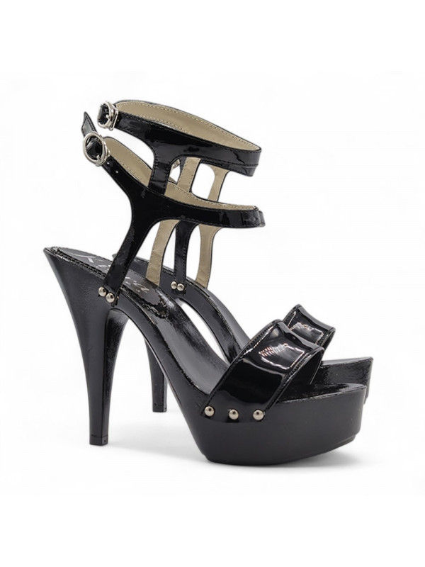 Black Patent Leather Sandals - 13 cm Heel - Handmade