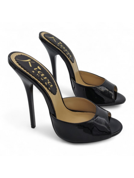 Black Patent Leather Stiletto Mules with 13 cm Heel – Open Toe