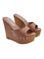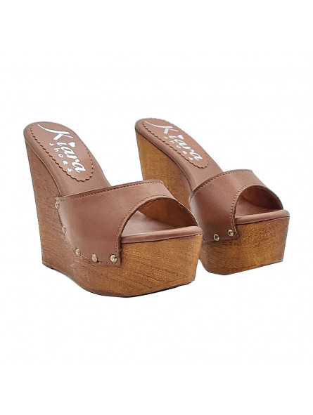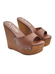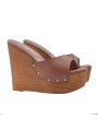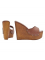 WEDGE BROWN LEATHER CLOGS
