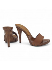 Entirely handmade in Italy, these clogs feature a polished wood-effect base paired with a warm-toned genuine leather upper.
