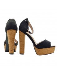 ZUECO DE ANTE SINTÉTICO NEGRO CON TACÓN ALTO