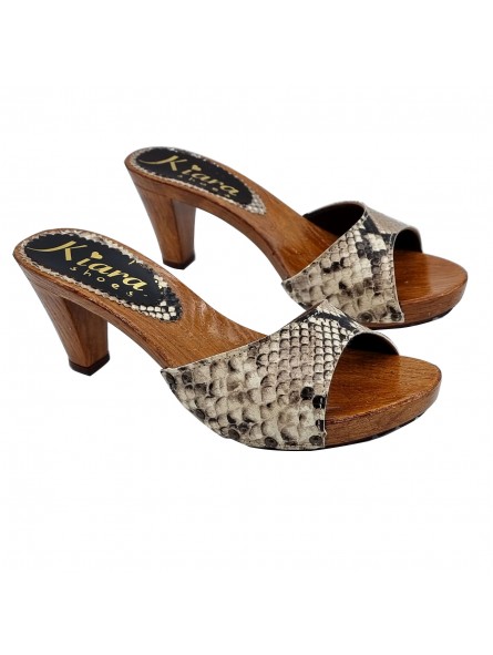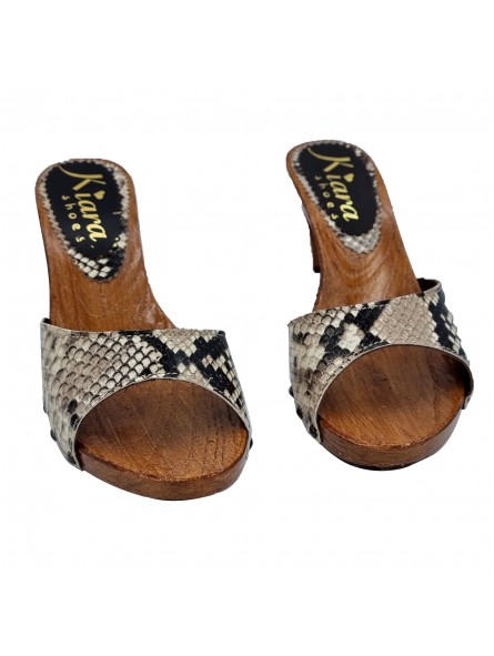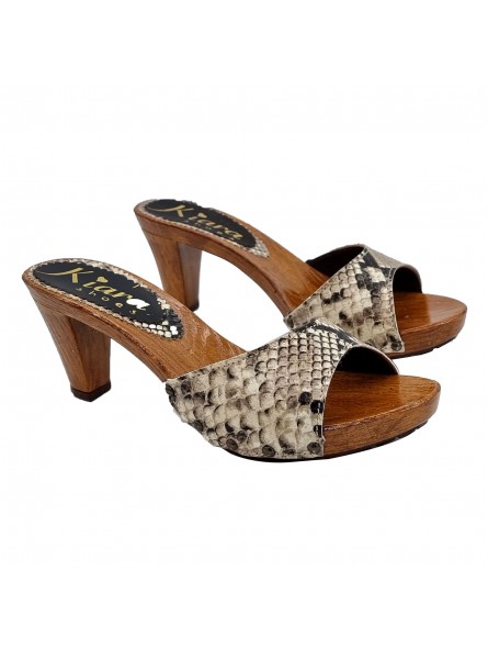 ZUECO CON BANDA BEIGE "EFECTO PITÓN" Y TACON CÓMODO
