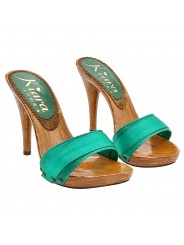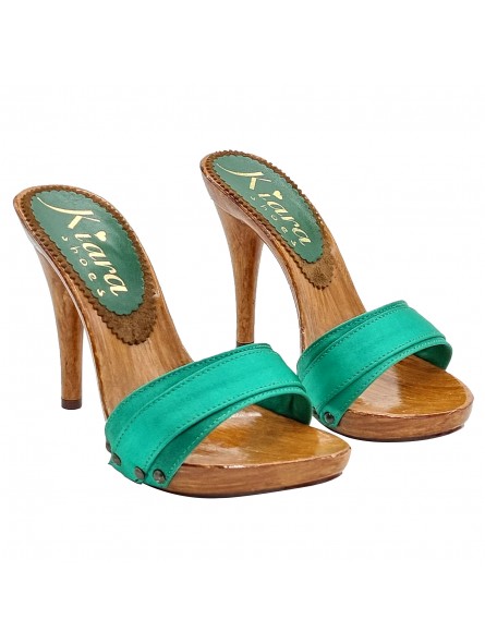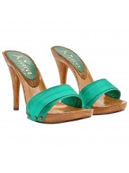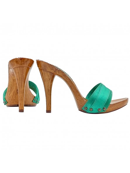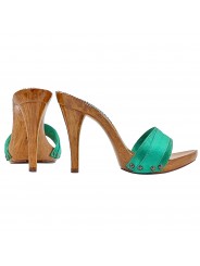 ZUECO DE SATÉN VERDE CON TACÓN ALTO