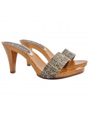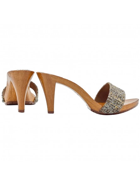 ZUECO BANDA TWEED MARRÓN CON TACON 9