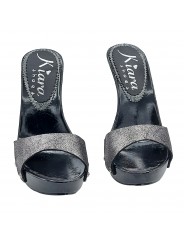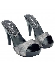 ZUECO ELEGANTES LAMINADOS PLATA CON TACÓN DE AGUJA