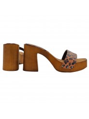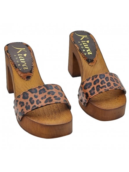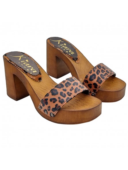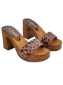 Zuecos con tira de piel genuina estampado animalier y tacón cómodo - K03203 GHEPARDO