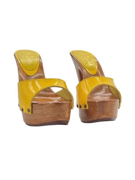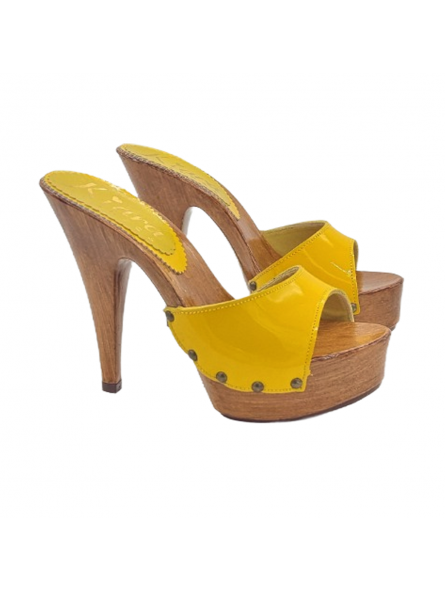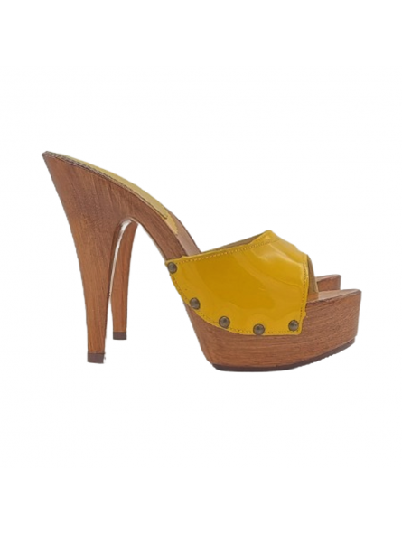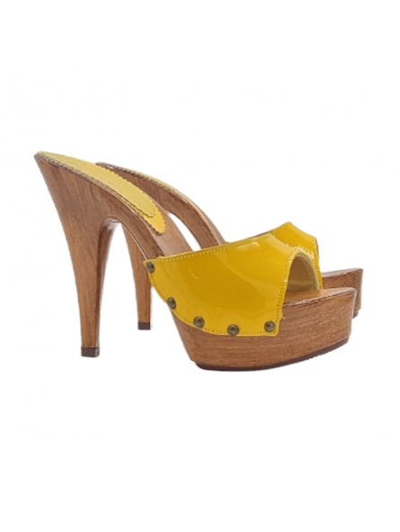 ZUECO MUJER CHAROL AMARILLO CON TACÓN