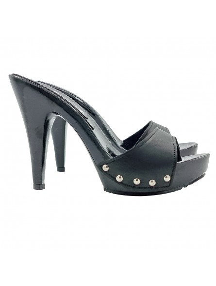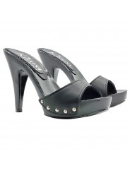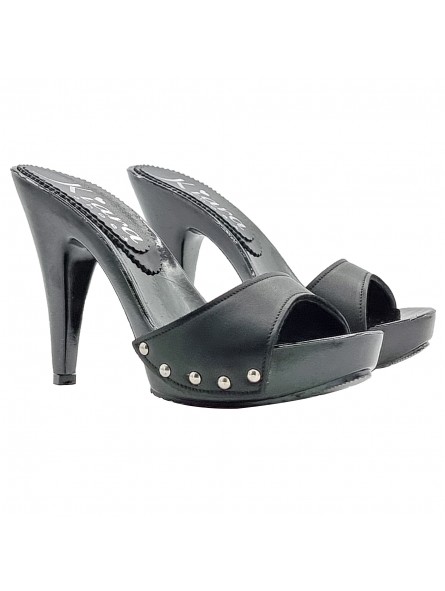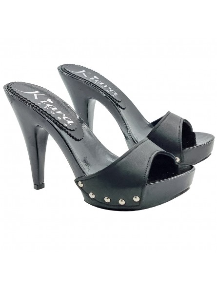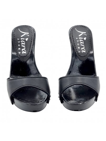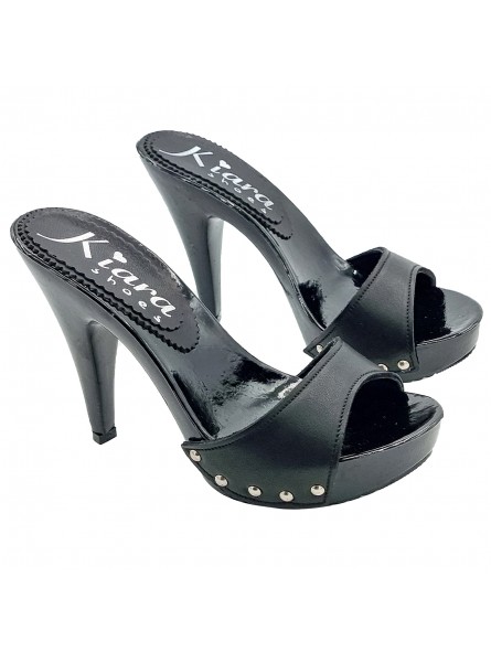 Zuecos de Mujer Elegantes en Cuero Negro | Tacón 11 cm | Kiara Shoes