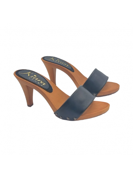 Zuecos de mujer tacón 9 parte superior de piel negra